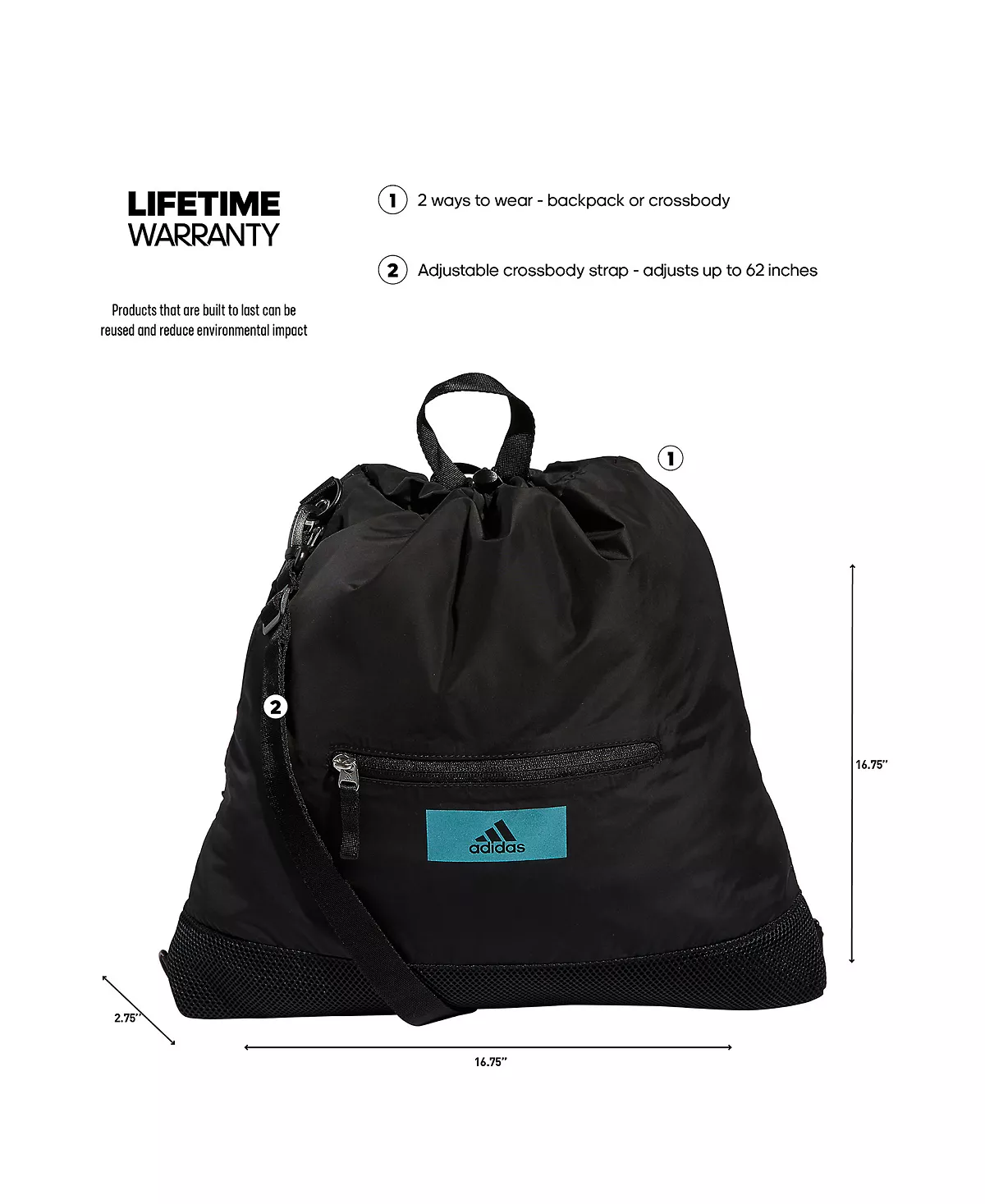 - Strap converts from crossbody to backpack