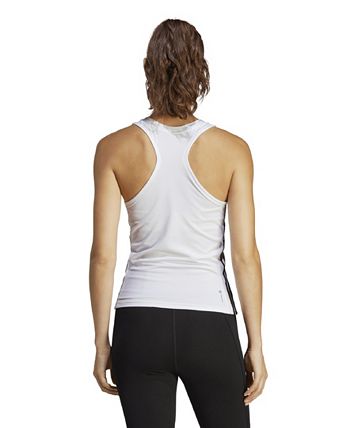 Push past your limits. This women’s adidas training tank top is made of soft and stretchy fabric for a snug fit that lets you move freely. Aeroready manages moisture and keeps you dry. A small performance logo in front adds a sporty finish.