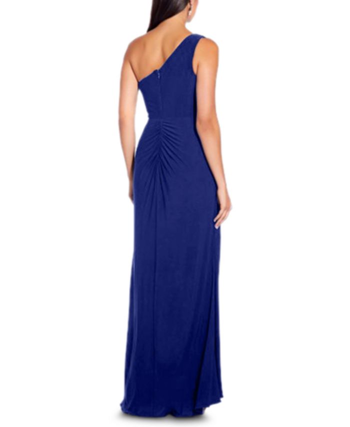 Simply elegant, this Adrianna Papell gown features a strikingly chic one-shoulder neckline and luxe matte jersey fabrication.