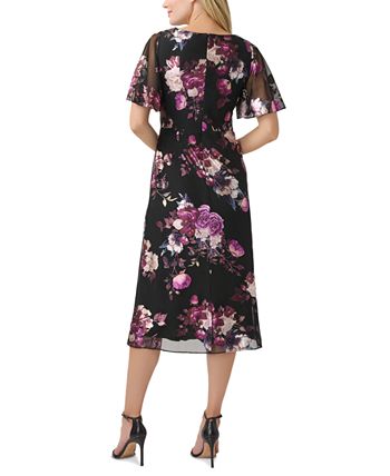 Bring on the blooms in Adrianna Papell’s faux-wrap dress.