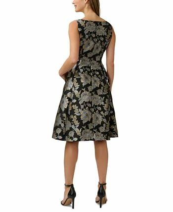 Floral jacquard glows with rich metallic tones in Adrianna Papell’s fit & flare dress that features a captivating keyhole front and center.