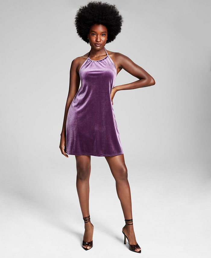 Strike a stylish pose in this smooth velvet A-line dress from And Now This, a sleeveless pick fashioned with a halter neckline.