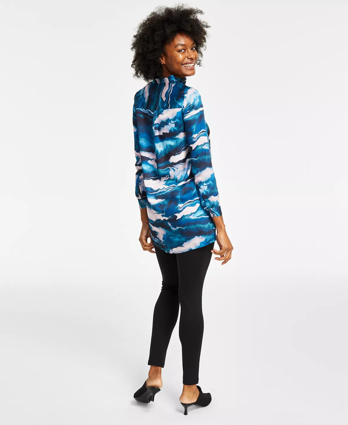 Coordinate an effortlessly stylish look with Anne Klein’s beautifully printed blouse matched with sleek compression leggings.