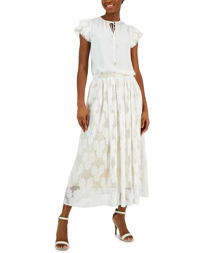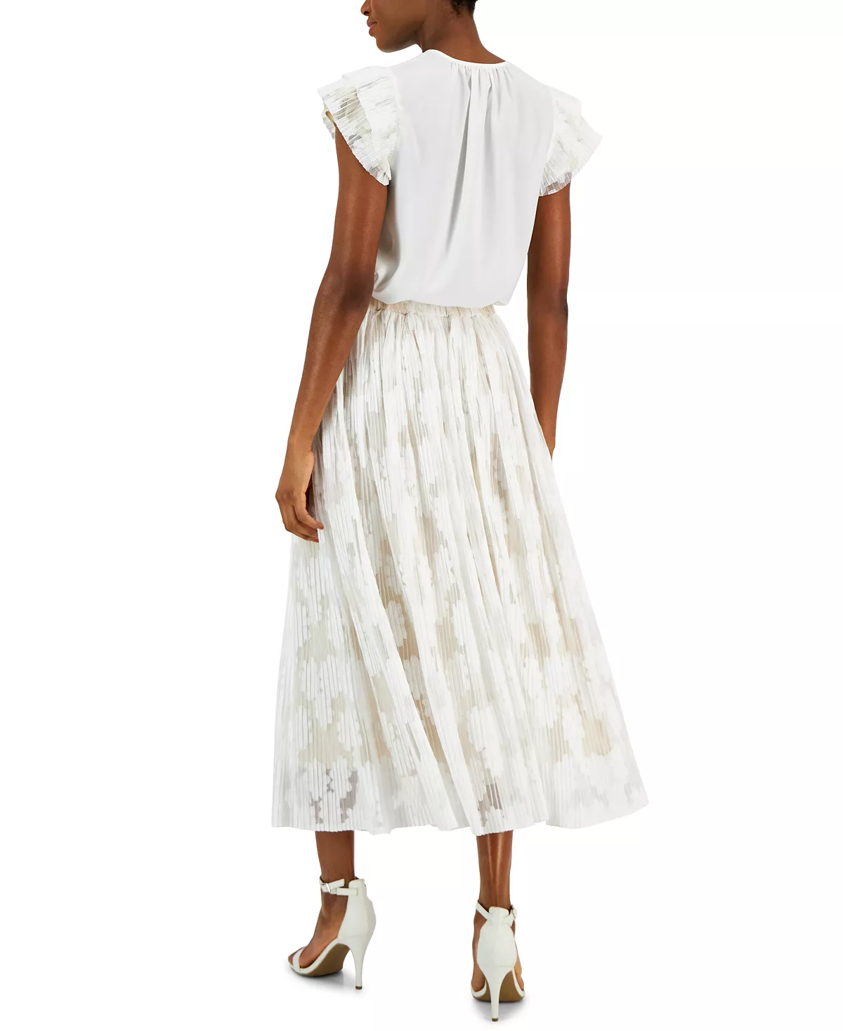 Anne Klein women’s lace top and pleated mesh floral skirt combo is a feminine and elegant outfit that is perfect for a day in the office.