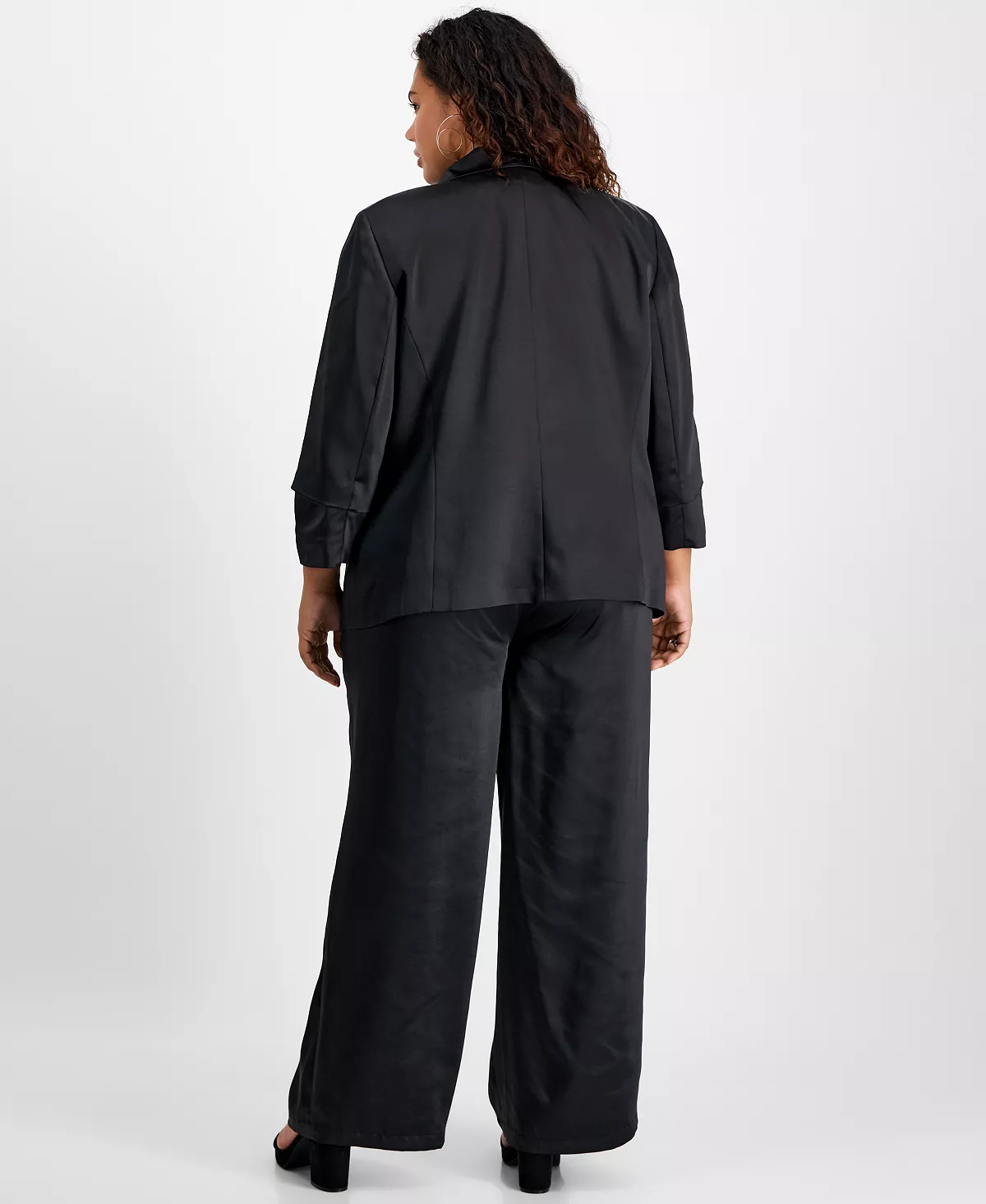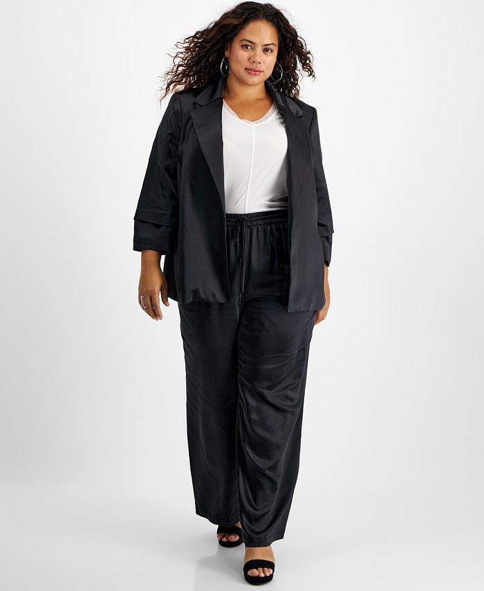 Washed satin dresses up the laid-back details (like pleated sleeves and a drawstring waist) of Bar III’s plus size jacket and pull-on pants to add professional polish to your look.