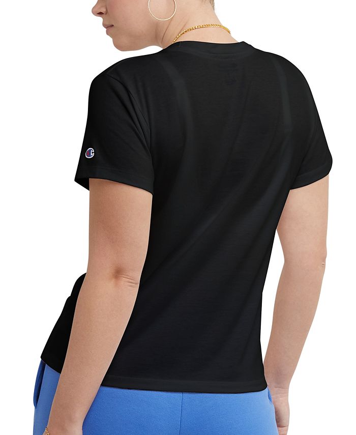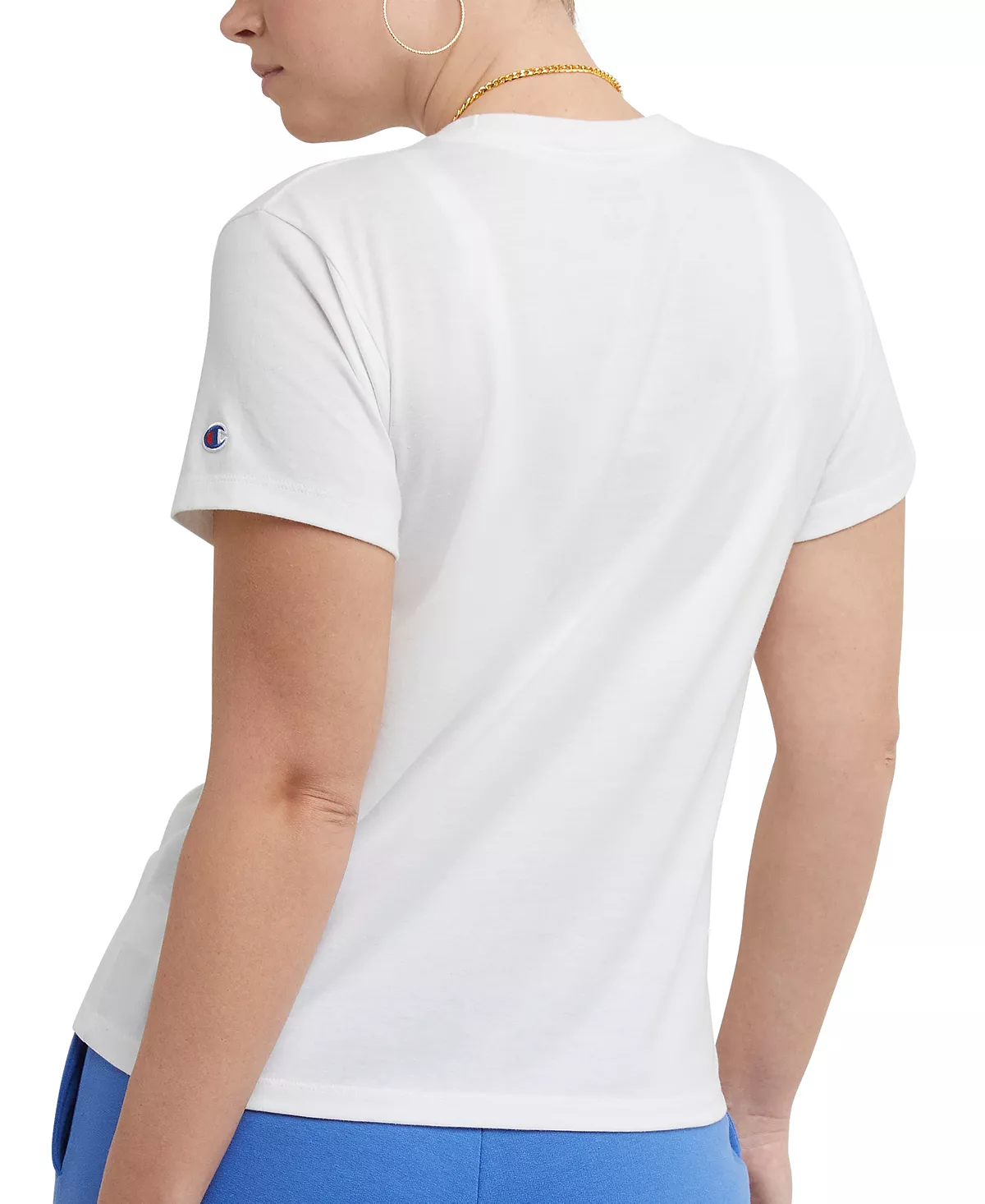 On the run or just running errands, this soft cotton tee from Champion is a great pick with a crewneck and logo print.
