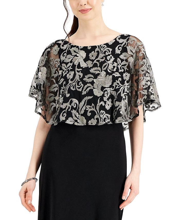 An intricately embroidered mesh overlay falls effortlessly over the bodice of this short-sleeve gown from Connected.