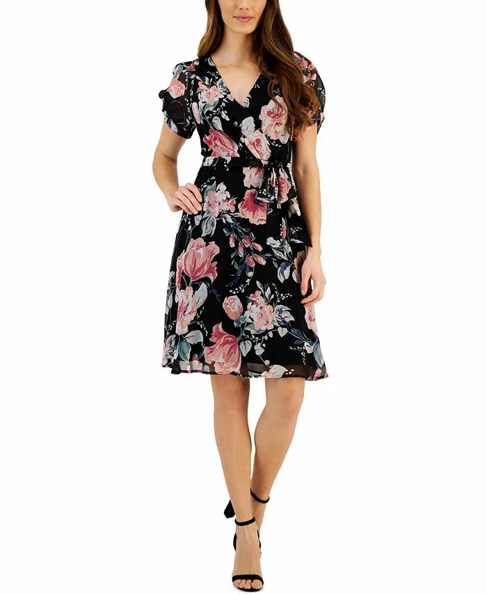 Blooming florals lend a charming look to this women’s sheath dress from Connected, a first-pick party-ready option.