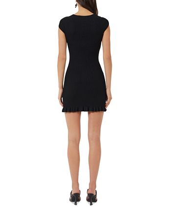 A sleek ribbed knit defines this curve-hugging bodycon dress from French Connection, a modern mini silhouette finished with chic cap sleeves and a romantic ruffled hem.