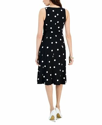 Polka dot print refreshes your wardrobe while the fit and flare silhouette of this Kasper dress conceals and reveals in all the right to places to flatter your figure.