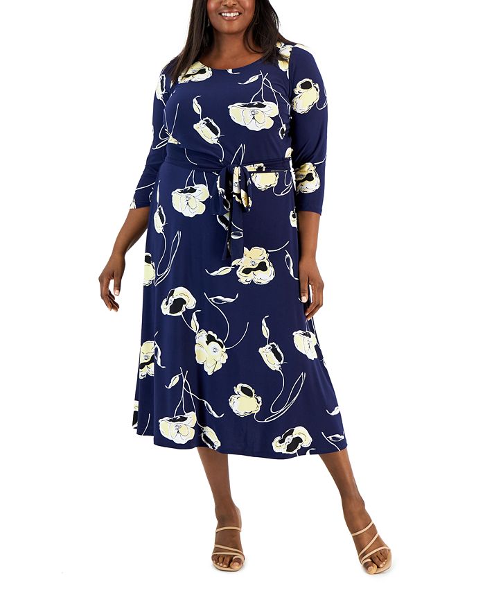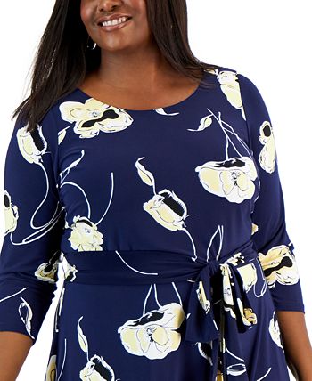 Twirl across the room in this figure-flattering plus size boatneck dress from Kasper, finished with a self-tie belt to enhance the waistline.