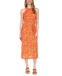 Effortless chic. This MICHAEL Michael Kors sleeveless midi dress features a chunky chain at the neckline that’s echoed in the fresh print.
