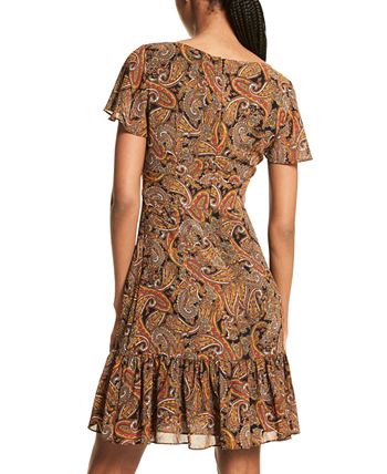 Bold paisley prints and a keyhole detail at front highlight this flutter-sleeve dress from MICHAEL Michael Kors.