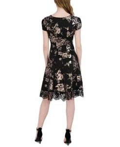 Donna Ricco Women’s Tulip-Sleeve Lace-Hem Fit & Flare Dress