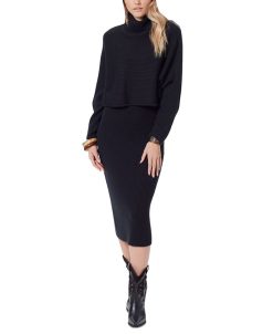 Ribbed throughout, a flowy turtleneck topper layers over a fitted sweater dress in the Aralyn two-piece set from Sam Edelman.