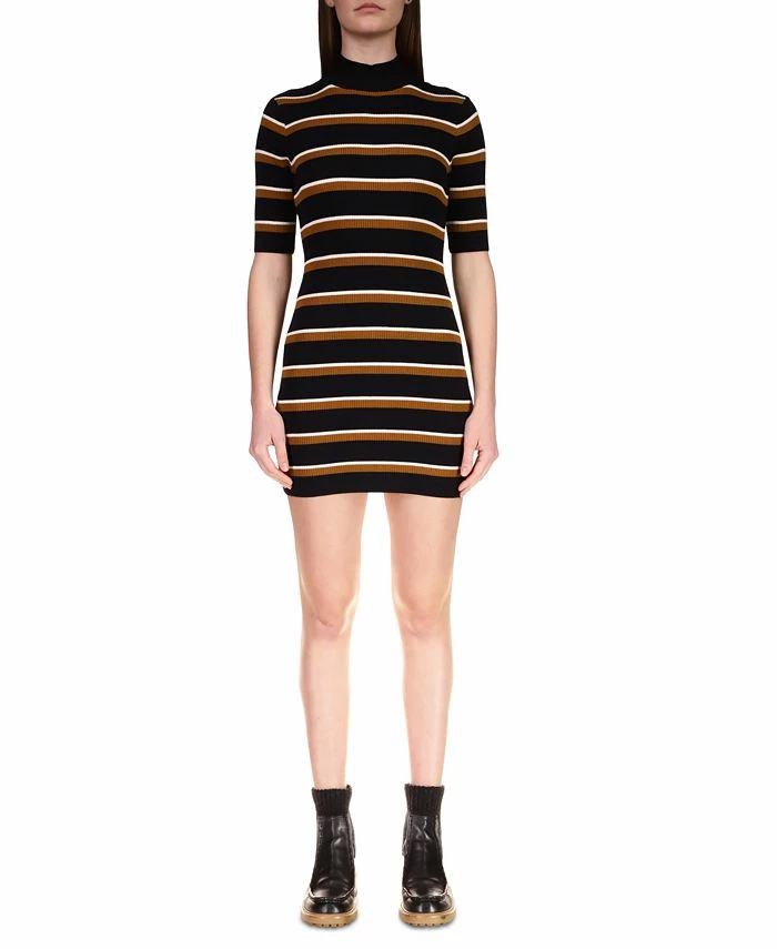 Striped print combines with a chic mock neck design to level up the classic fitted mini dress. Sanctuary finishes this retro-feel piece with an easy-rib texture for effortless style.