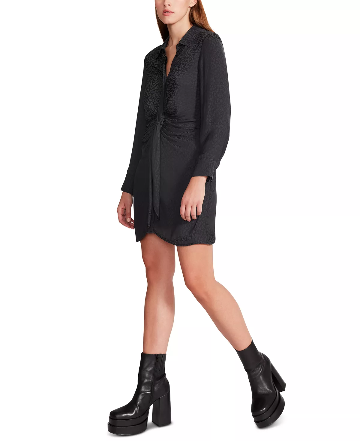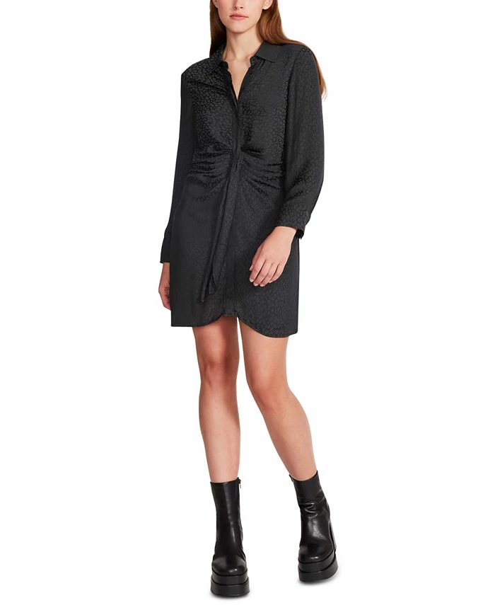 Stun from sun up to sundown in this chic twist-front, leopard-print mini dress from Steve Madden/