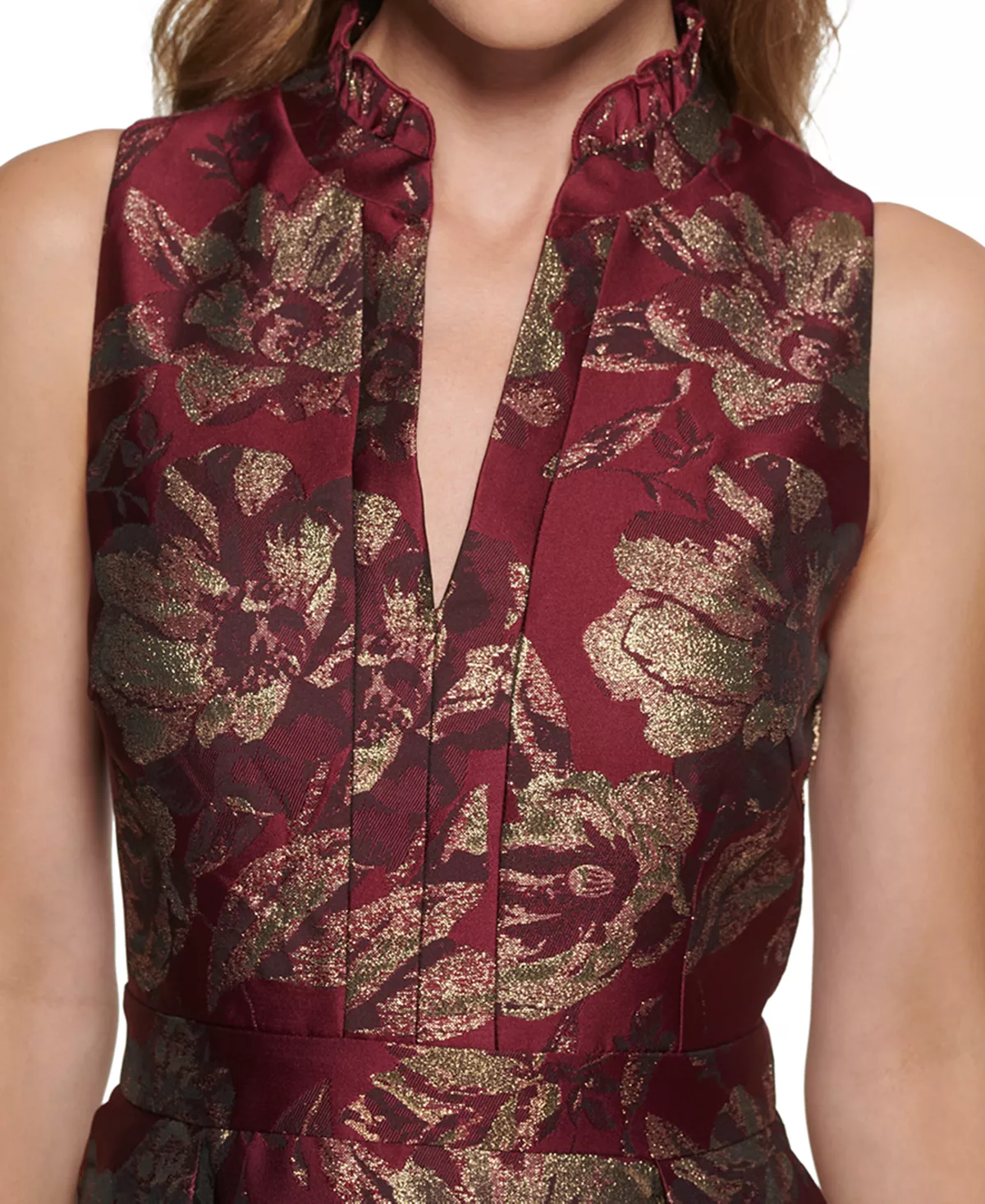 A ruffled mock neck beautifully opens up this fit & flare dress from Vince Camuto.