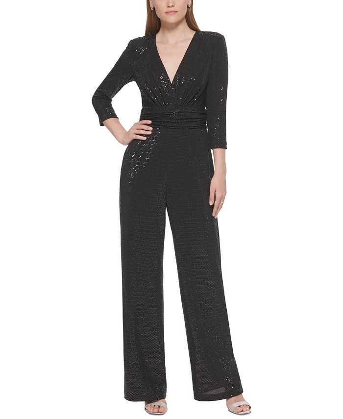 The one-piece wonder your party wardrobe needs. This Vince Camuto jumpsuit is simple-but-striking with a plunge neckline and straight leg.